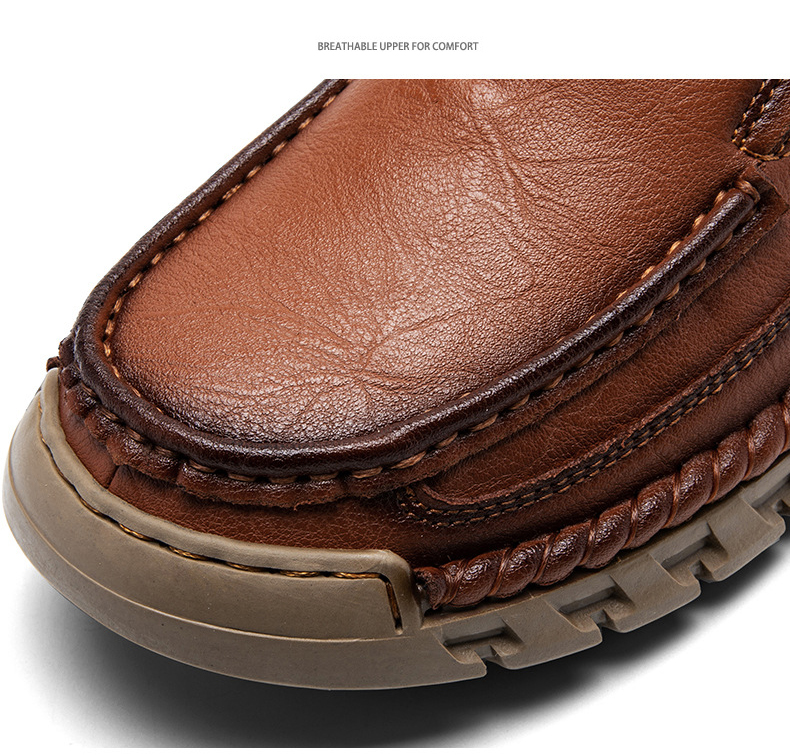 Hand-sewn, even and neat, double-row solid lines, reinforced upper, durable and comfortable