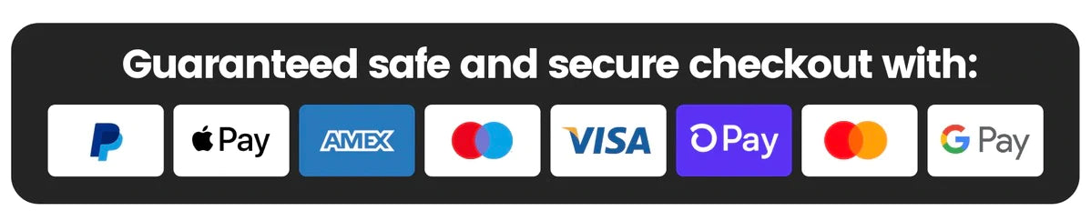 The Checkout Process is Guaranteed to be 100% Safe and Secure with Visa, Mastercard, AMex, Discover, Apple Pay or PayPal.